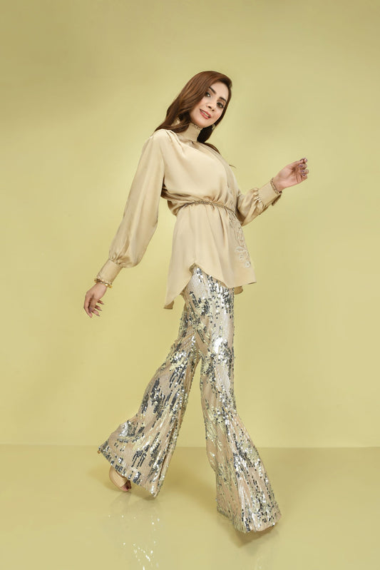 Sold outShop NowSilk top with Bling Trouser